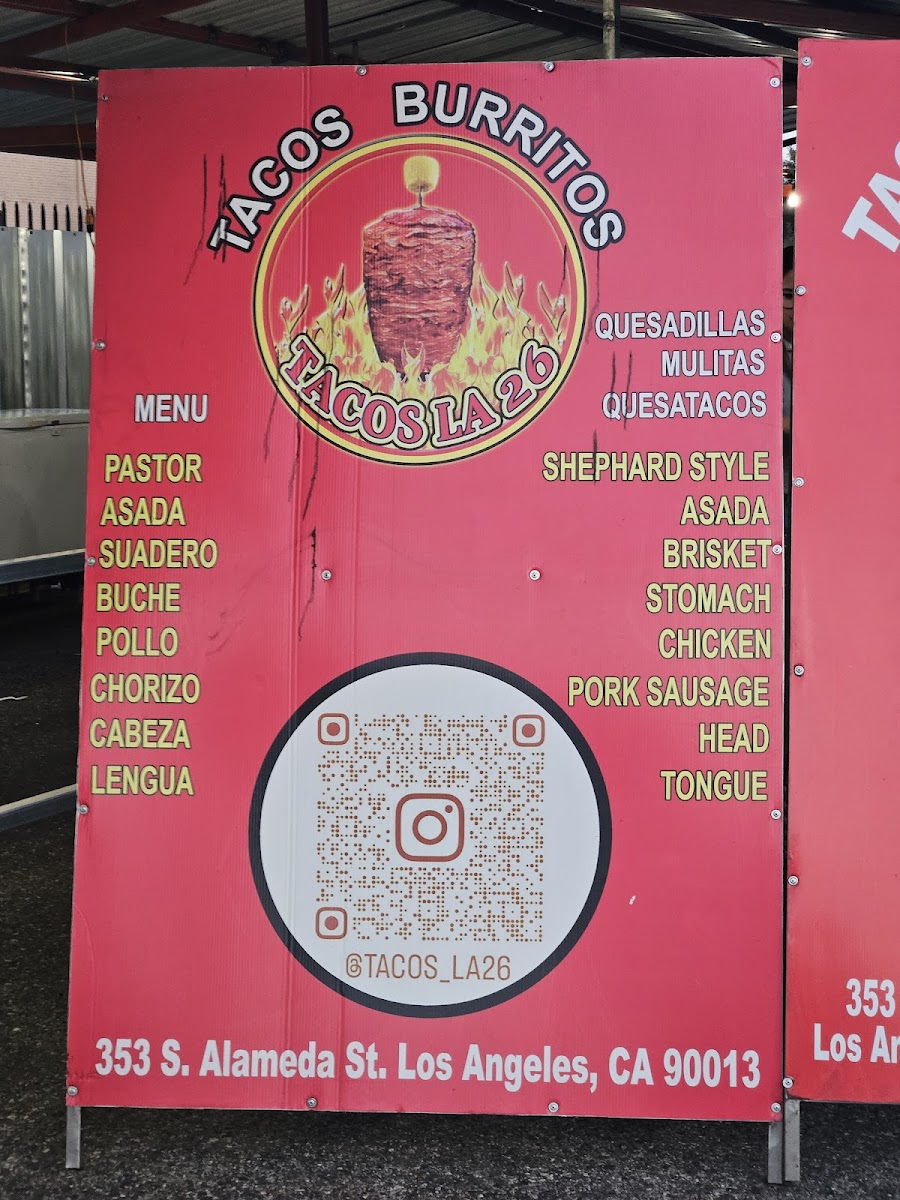 Welcome to Tacos La 26!, formerly known as Ave 26 Tacos, where the heart of Mexican street food beats strong in Downtown LA. Nestled at 353 S Alameda St, this taco haven serves a variety of authentic flavors sure to tantalize any palate.